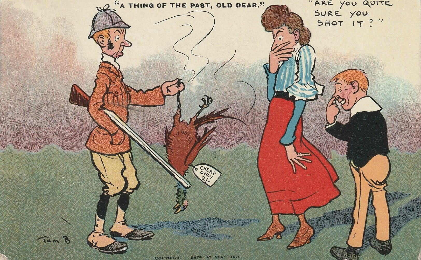 Postcard franked London 1907 - Pub: Davidson Bros - Original by Tom Browne 2607