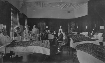The photo shows the library converted as a ward.