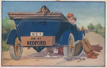 Novelty pocket postcard franked Bedford 1920 (Ref: PC_Bedford_0385)