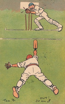 Postcard franked Cambridge 1908 - Pub: Davidson Bros - Original by Tom Browne 2562