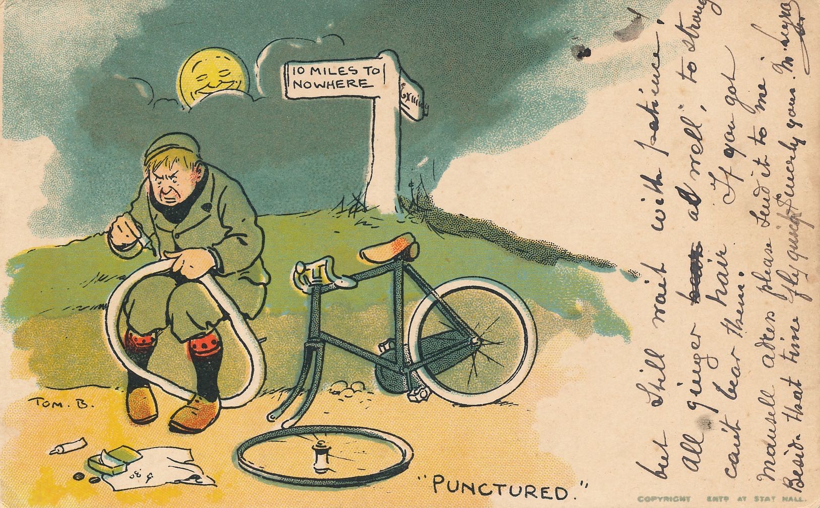 Postcard franked Elie 1904 - Pub: Davidson Bros - Original by Tom Browne 2521