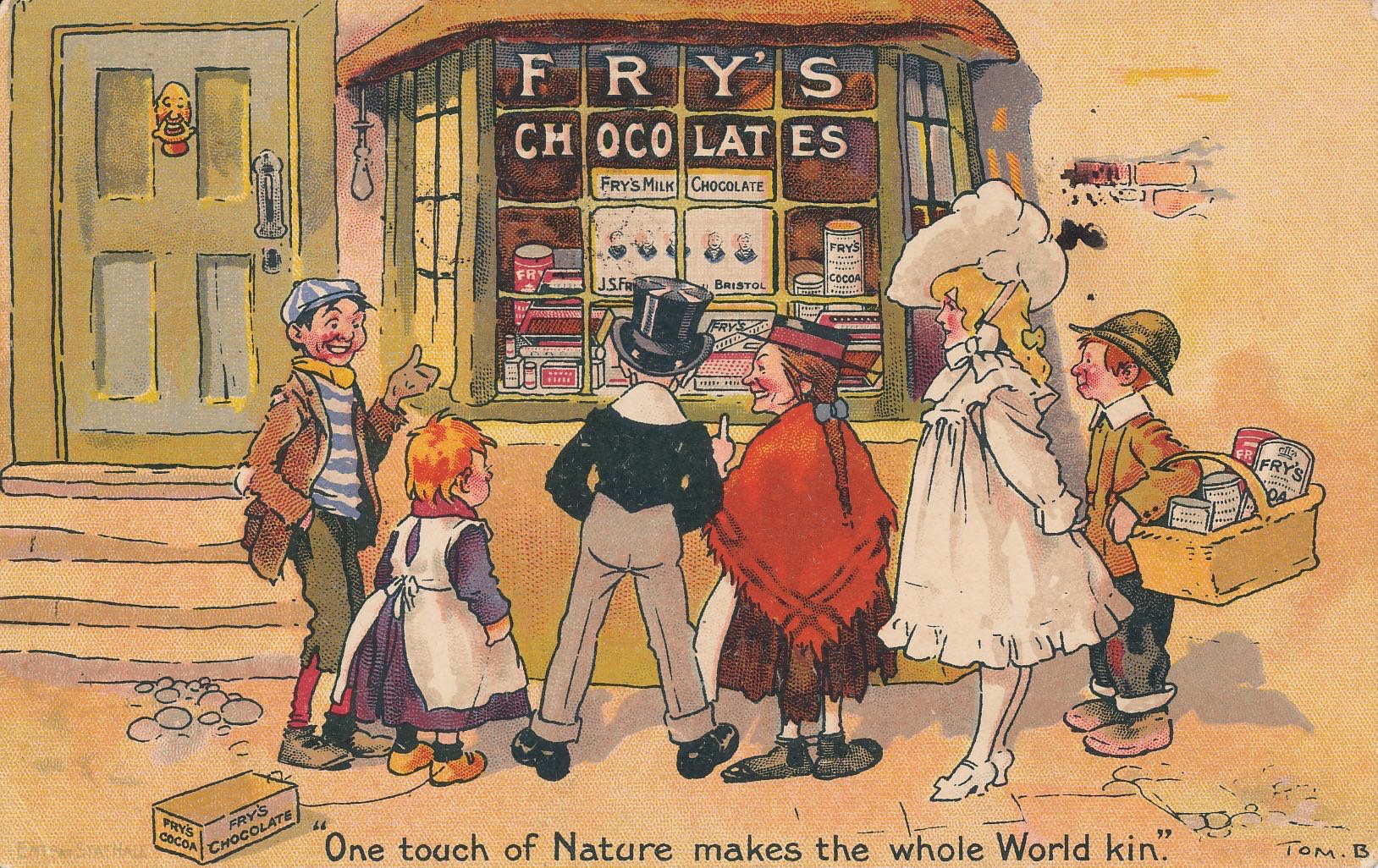 Postcard posted in Portugal c1909 - Pub: J S Fry & Sons - Drawing by Tom Browne