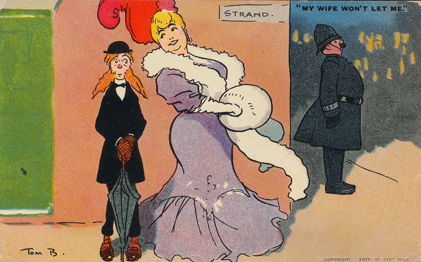 Postcard franked Egham 1908 - Pub: Davidson Bros - Original by Tom Browne 2608
