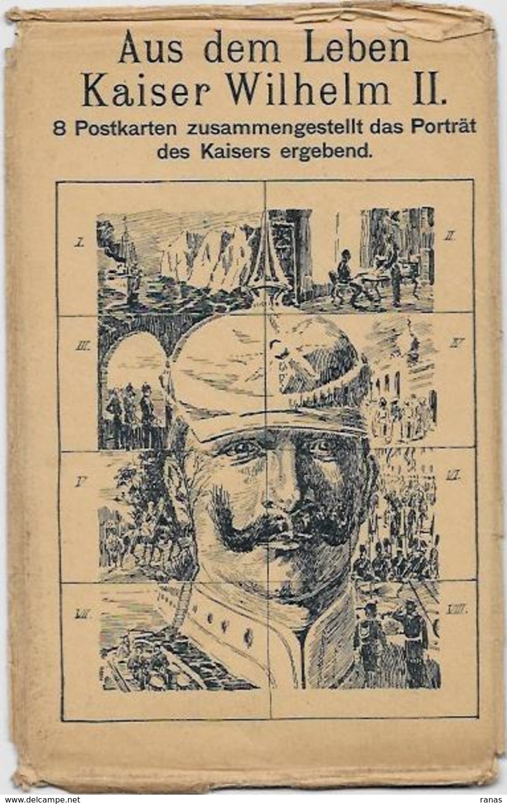 This series of eight cards was sold in a special envelope (pictured right) to celebrate the early life of Kaiser Wilhelm II, the last German Emperor and King of Prussia, who reigned from 1888 until his abdication in 1918. The cards in this particular set were all posted in Amsterdam in March 1902 to the same person and address in Amsterdam (presumably the buyer of the cards).