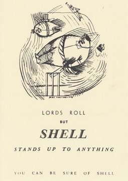 A small selection of postcards showing classic Shell adverts, published by Shell UK in 1993 - two (Lords and Edwardes Square) showing designs by Denis Constanduros and one (Wormwood Scrubs) by Edward Bawden, all dating from 1936.
