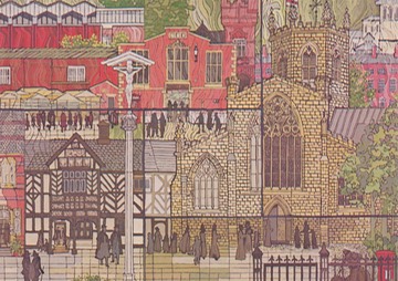 Second of a set of three postcards specially commissioned to commemorate the rebuilding of the Post Office in the 400th Anniversary of the Great Fire of Nantwich in 1583 - Design by Gerald Rickards.