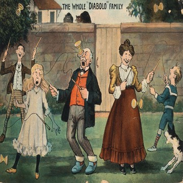 A selection of humorous postcards with cartoons inspired by the then popular Diabolo craze. Apart from the cards below, the prolific postcard artist Tom Browne produced a number of cards on the same theme.