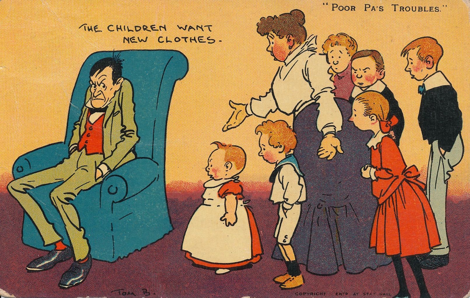 Postcard franked 1906 - Pub: Davidson Bros - Original by Tom Browne 2581