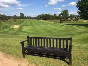 Reg Simpson’s bench behind Red 15th green