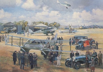 The design is based on a painting by Edmund Miller called “A Flying Start to the Day” and depicts the start of a typical day’s flying at Longman Municipal Aerodrome, Inverness in 1937. It shows Capt R E Fresson OBE (in plus fours at the centre of the group of pilots) briefing his crews at the start of the day as well as other potential passengers and cargo including mail bags delivered by a GPO van.