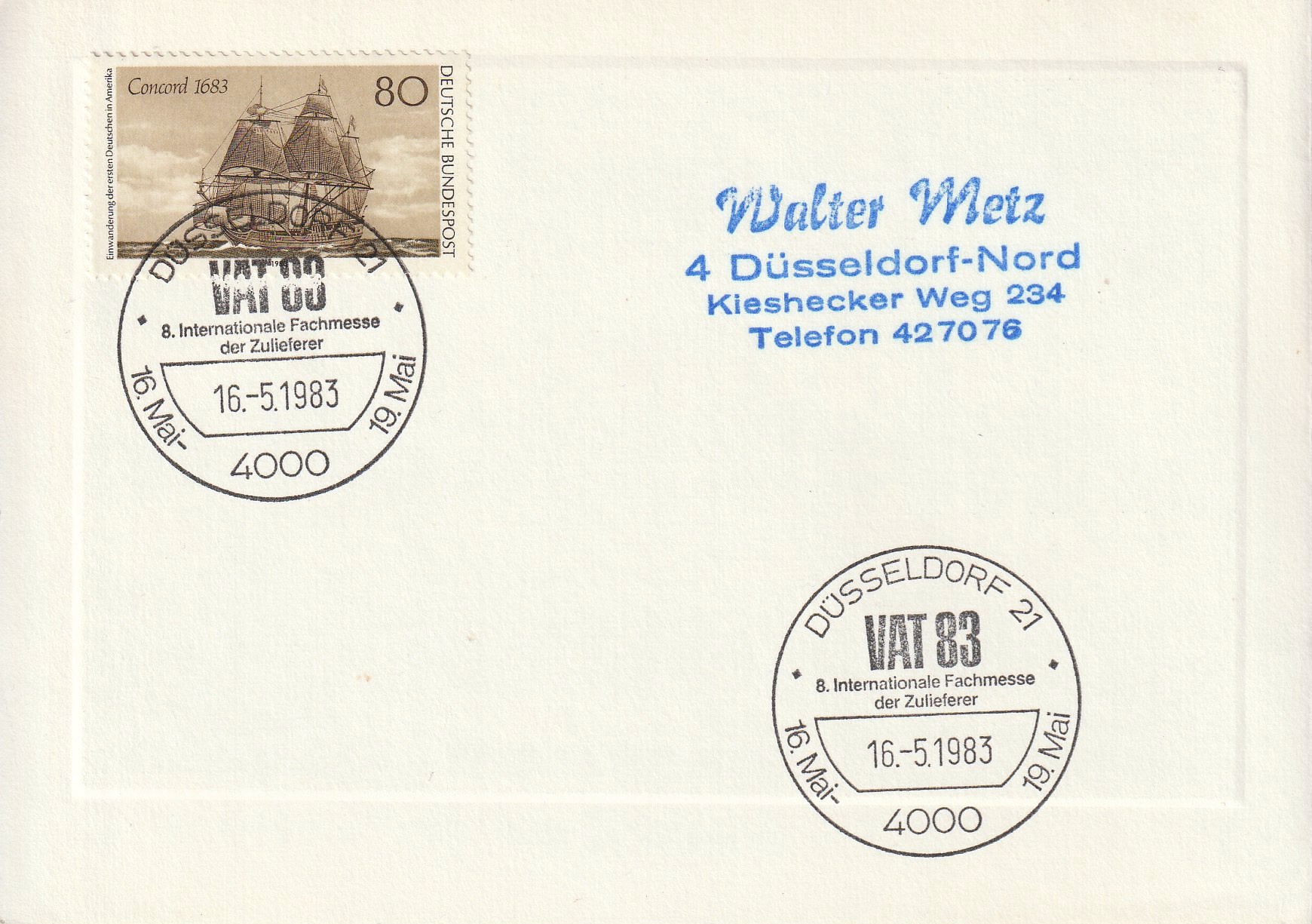 Folding card with advertising on the two inside pages.