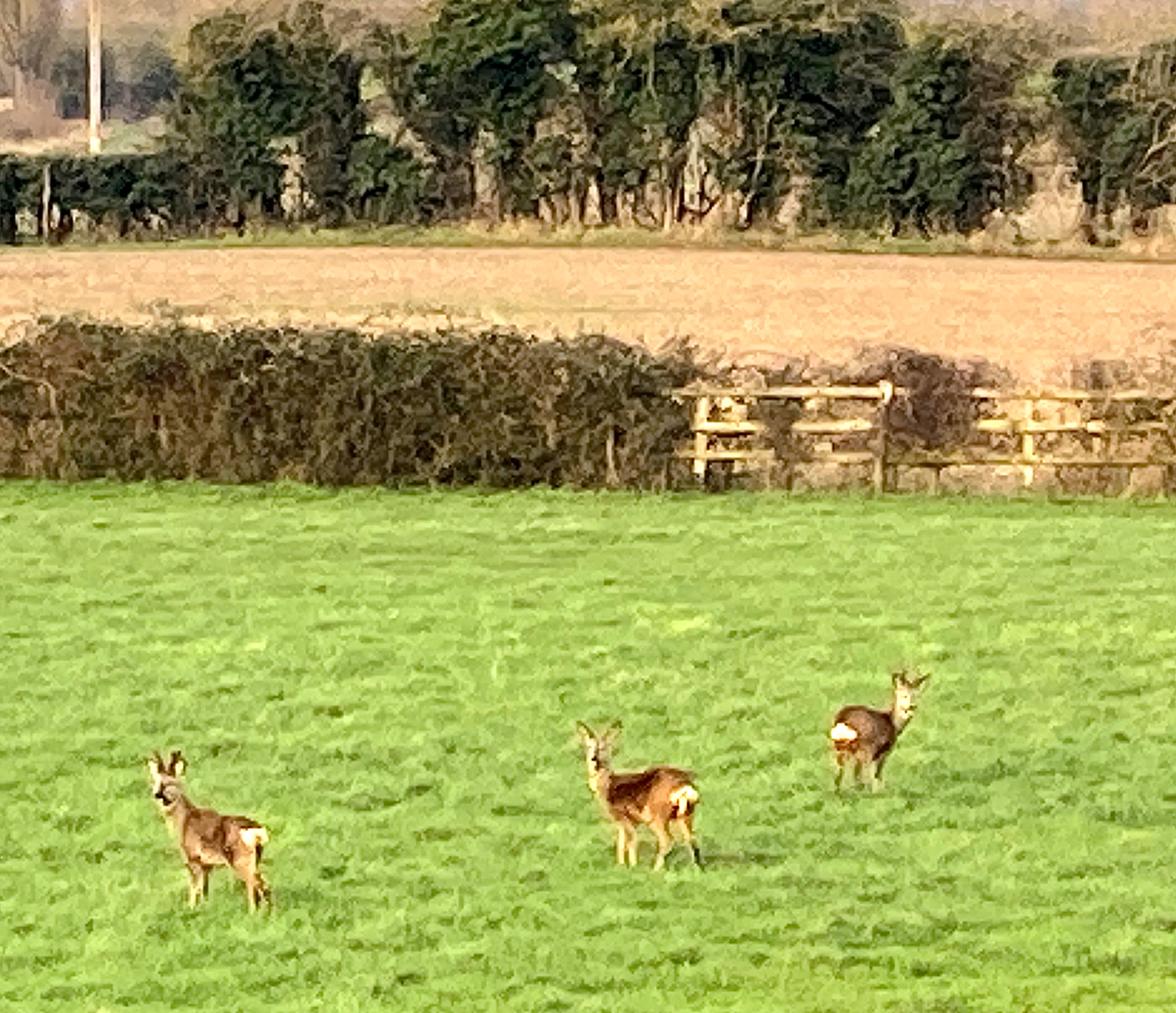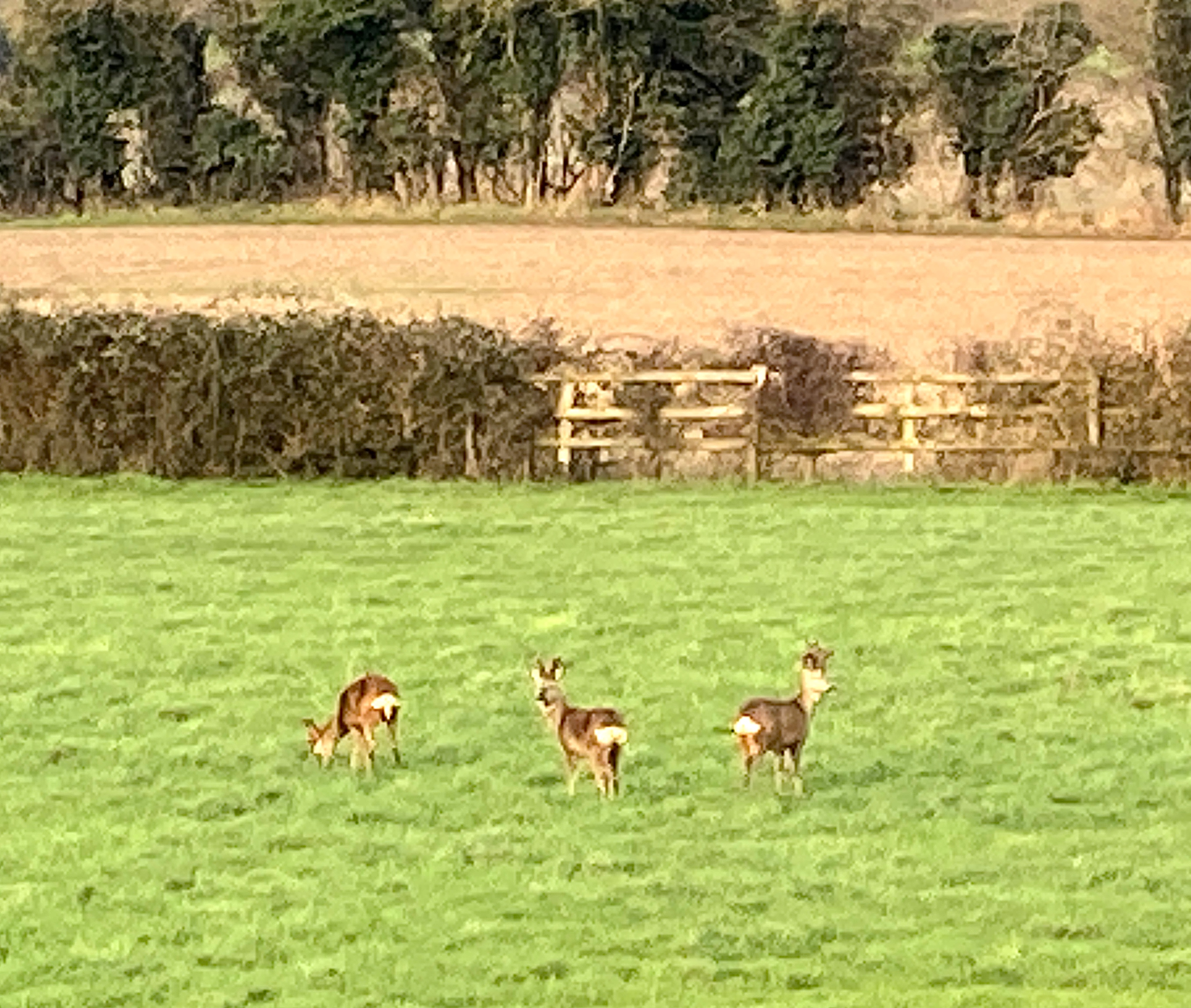 A special treat - three roe deer paying a visit to the neighbouring field